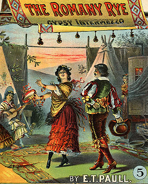 Romanticized, fictional representation of 'gypsies' from cover of song book